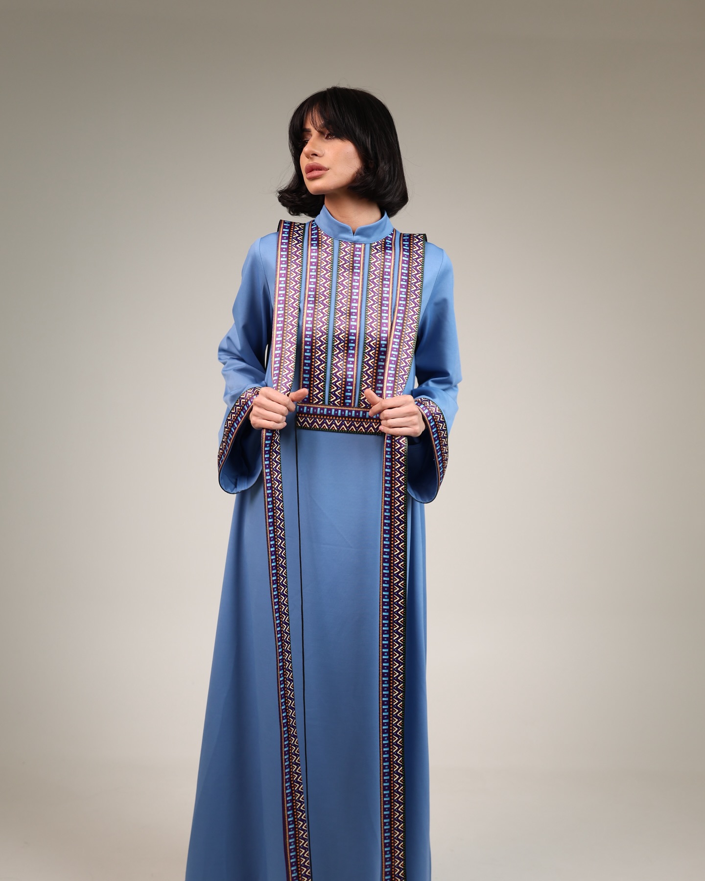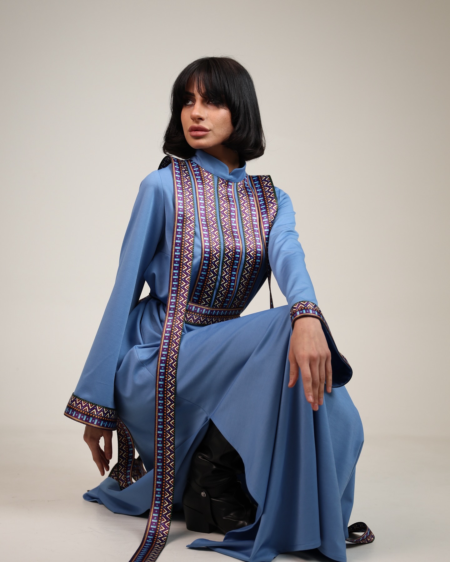 ტრადიციული სამოსის უნიკალური ნიმუში, რომელიც ასახავს ხევსურეთის საოცარ კულტურასა და ოსტატობას. კაბის დახვეწილი დიზაინი, მკვეთრი ხაზები და ტრადიციული ორნამენტები მას განსაკუთრებულ ელეგანტურობას ანიჭებს.