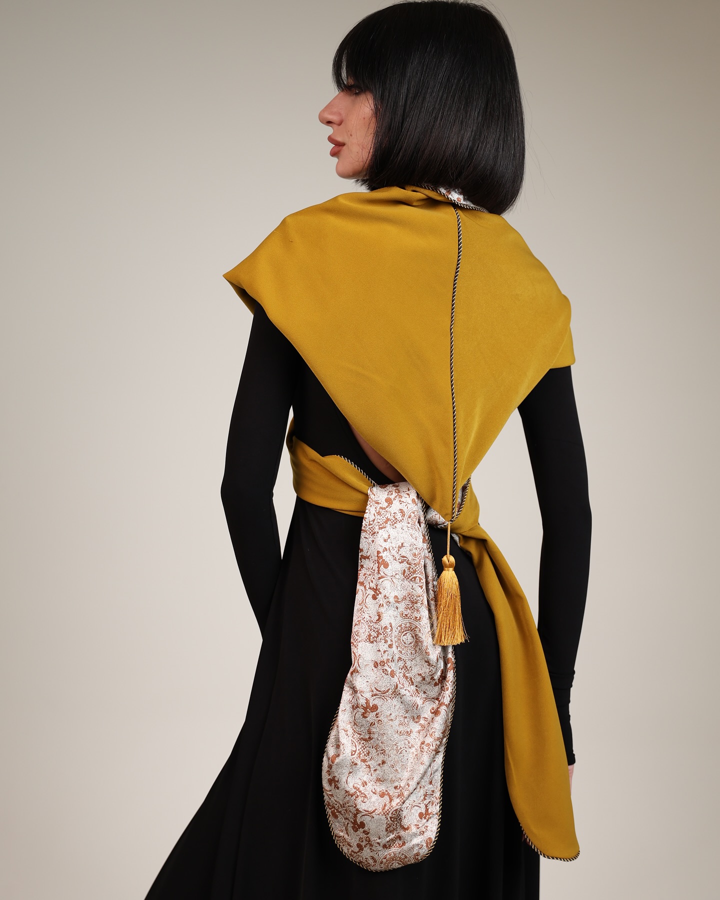 – ტრადიციისა და თანამედროვეობის ნაზავია, სადაც ელეგანტურობა და კომფორტი ერთ მთლიანობაშია გადმოცემული. აბრეშუმის სარჩული შიგნიდან ნაზად ეხმიანება გარე ქსოვილს და სიარულისას თითოეულ მოძრაობას სიმსუბუქეს აძლევს.
