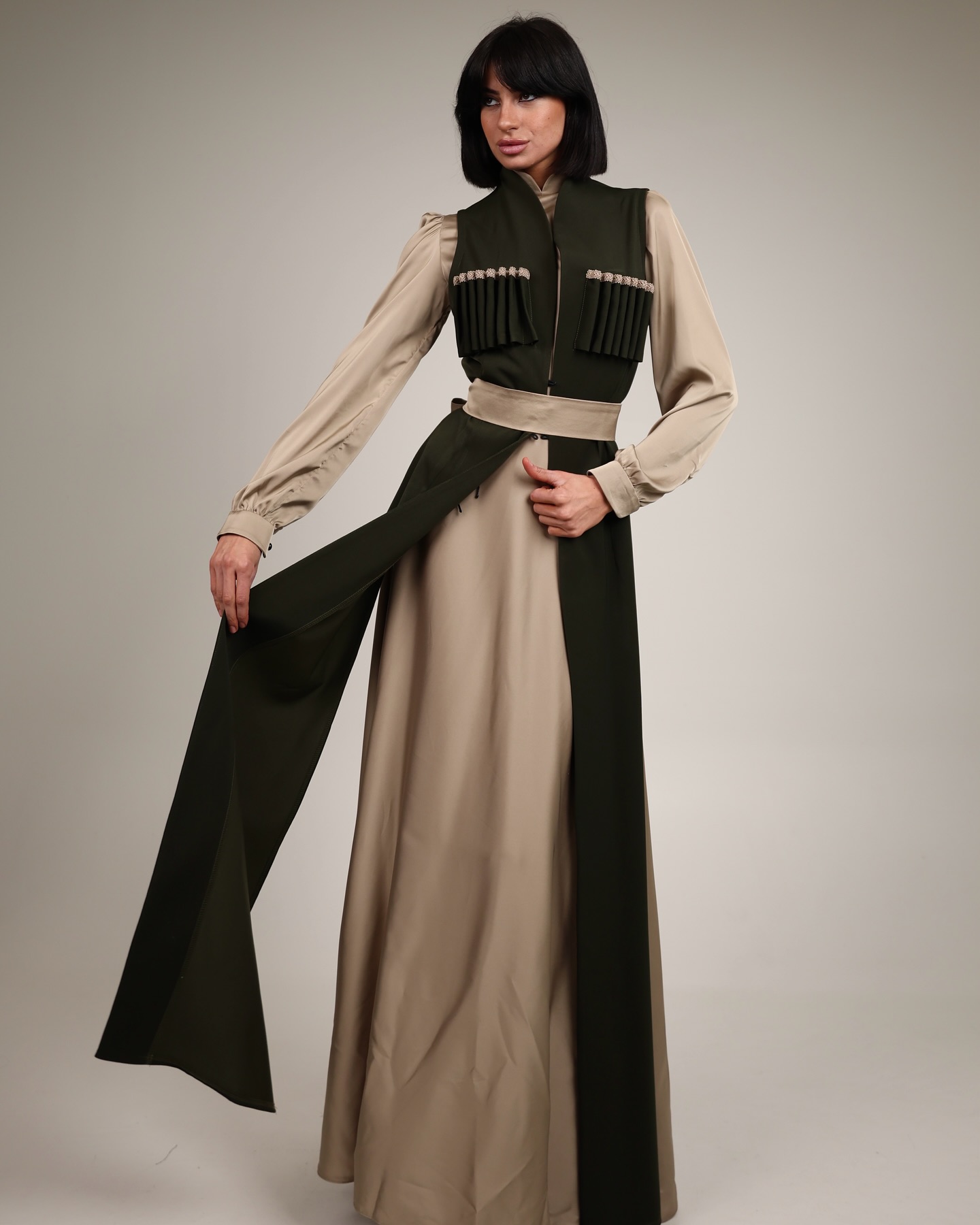 Home ქართულ-გათანამედროვებული სამოსი კაბები ჩოხა მოსასხამი და აბრეშუმის კაბა