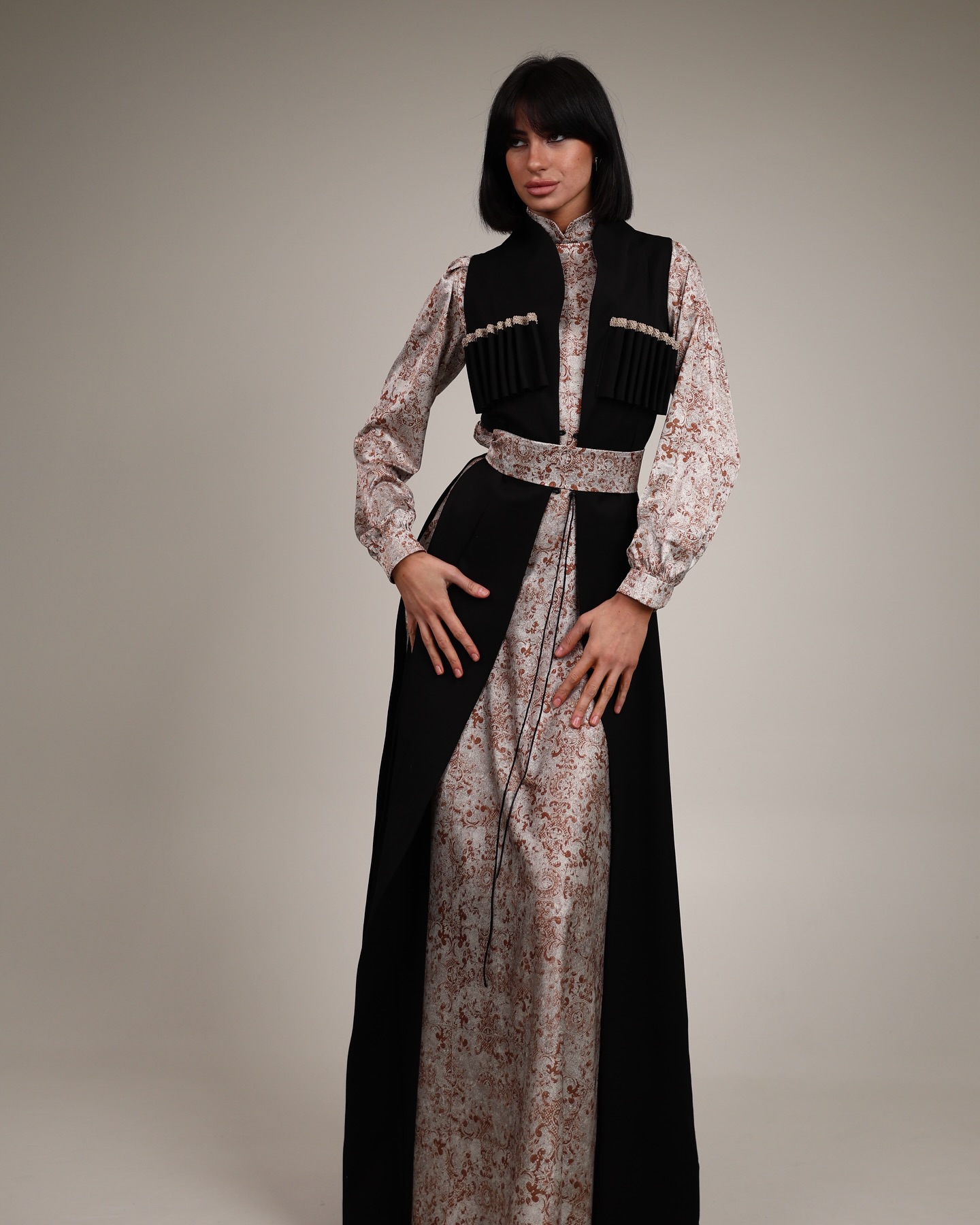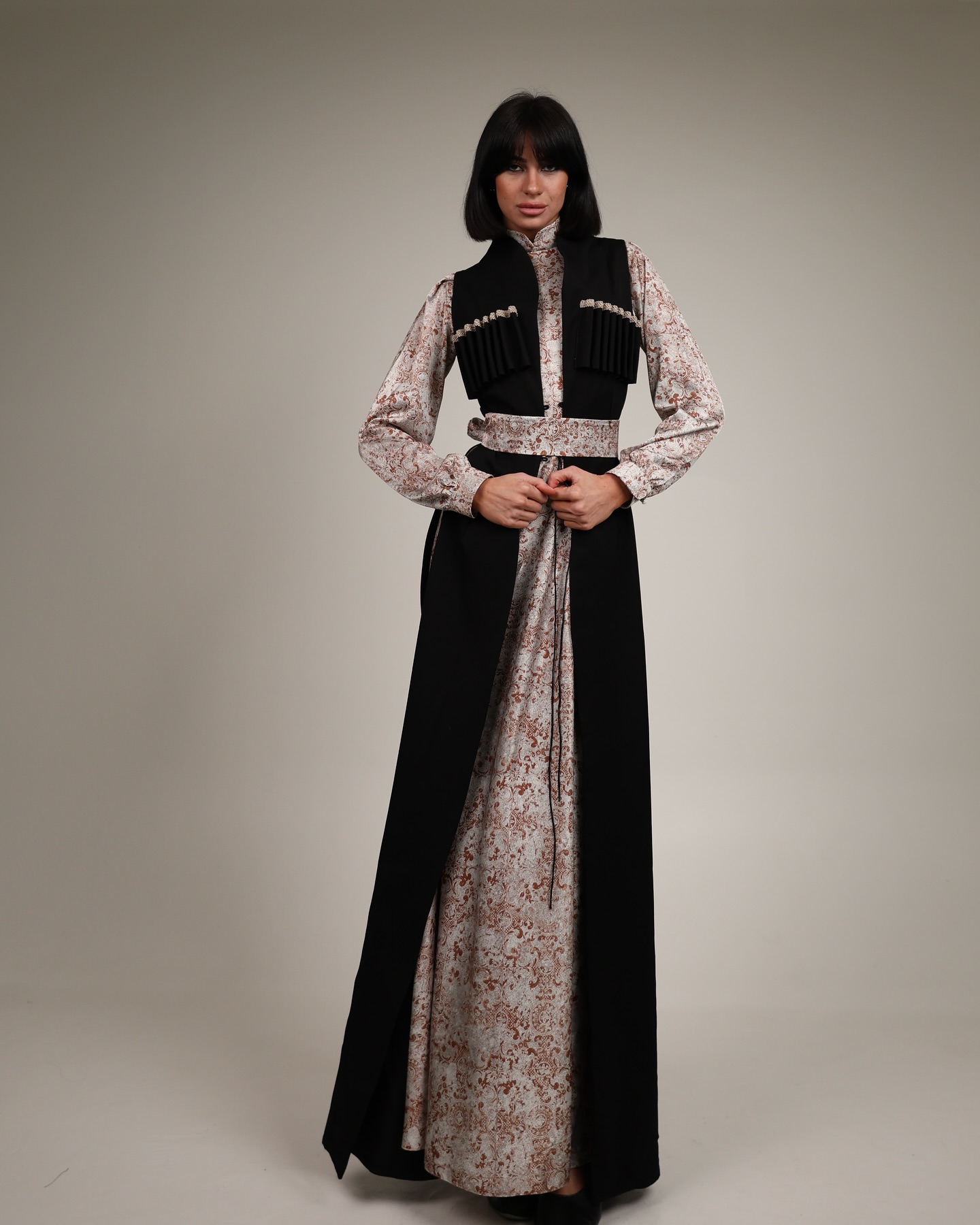Home ქართულ-გათანამედროვებული სამოსი კაბები ჩოხა მოსასხამი და აბრეშუმის კაბა