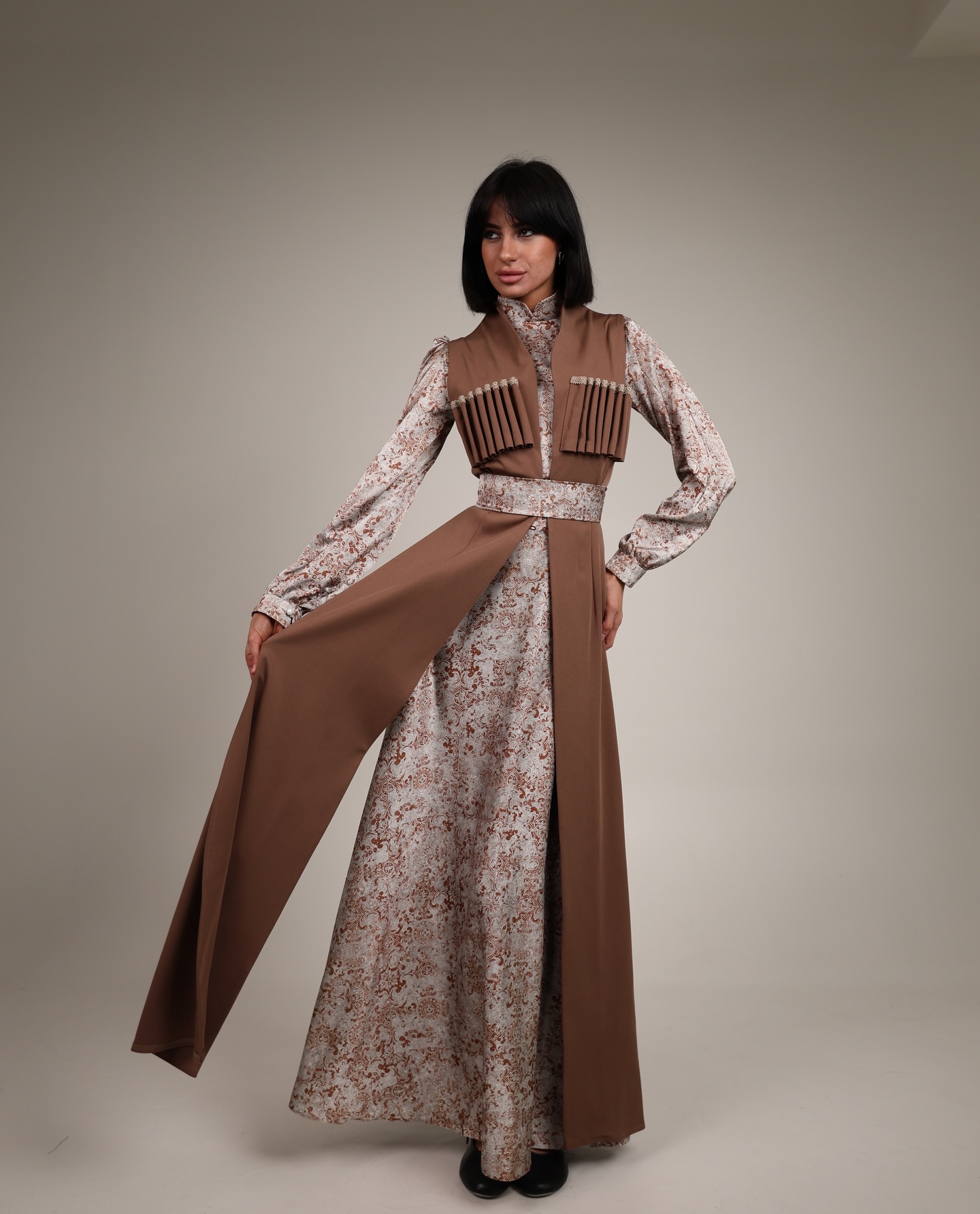 Home ქართულ-გათანამედროვებული სამოსი კაბები ჩოხა მოსასხამი და აბრეშუმის კაბა