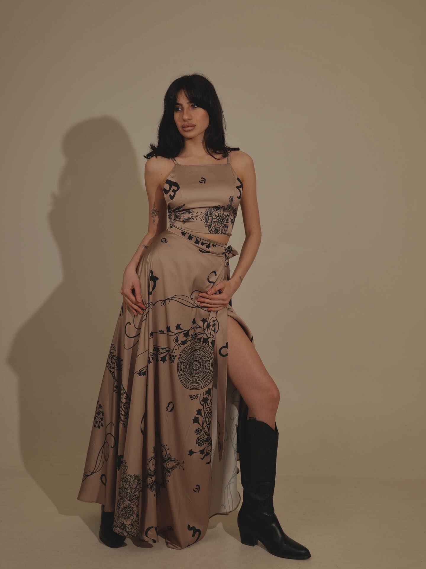 ნაზი ტექსტურა, თავისუფალი სილუეტი და ელეგანტური მოძრაობა ქმნის დახვეწილ, მაგრამ გამორჩეულ იერს. თითოეული დეტალი გააზრებულია ისე, რომ სამოსმა ერთდროულად გამოხატოს სიმსუბუქე და ხასიათი.