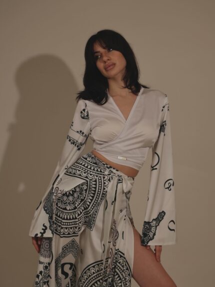 ნაზი ტექსტურა, თავისუფალი სილუეტი და ელეგანტური მოძრაობა ქმნის დახვეწილ, მაგრამ გამორჩეულ იერს. თითოეული დეტალი გააზრებულია ისე, რომ სამოსმა ერთდროულად გამოხატოს სიმსუბუქე და ხასიათი.