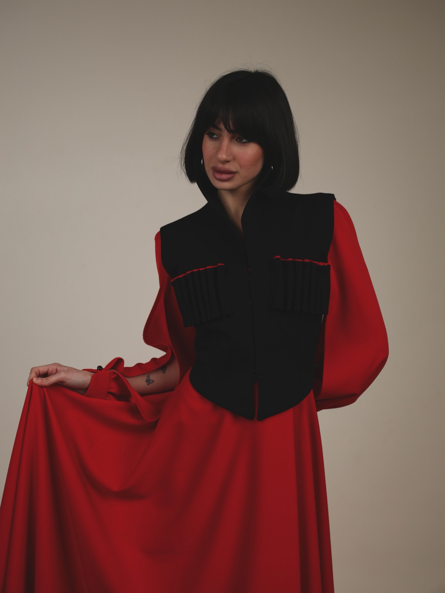წარმოგიდგენთ ხელით დამზადებულ მოსასხამსა  და აბრეშუმის კაბას ,  რომელიც აერთიანებს ქართული ტრადიციის ძალასა და თანამედროვე დიზაინის ელეგანტურობას.