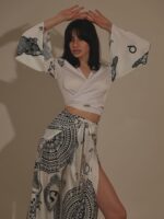 ნაზი ტექსტურა, თავისუფალი სილუეტი და ელეგანტური მოძრაობა ქმნის დახვეწილ, მაგრამ გამორჩეულ იერს. თითოეული დეტალი გააზრებულია ისე, რომ სამოსმა ერთდროულად გამოხატოს სიმსუბუქე და ხასიათი.